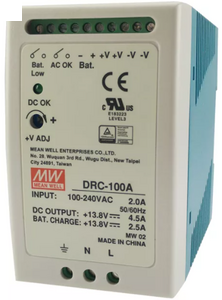DRC-100A AC-DC с функцией UPS, 60Вт, вход 90...264В АС/127...370В DC, выход 1: 13.8В/0…7 (4.5 ном.) А, выход зарядного устройства 13.8В/2.5А, изоляция 3000В АС, в корпусе 55х90х100мм, -30...+70°С